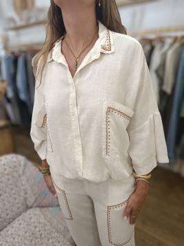° Coloris beige avec broderies dans les tons de bordeaux,...