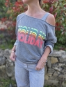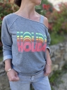 ° Coloris gris chiné avec inscription "HOLIDAY " en paillettes multicolores